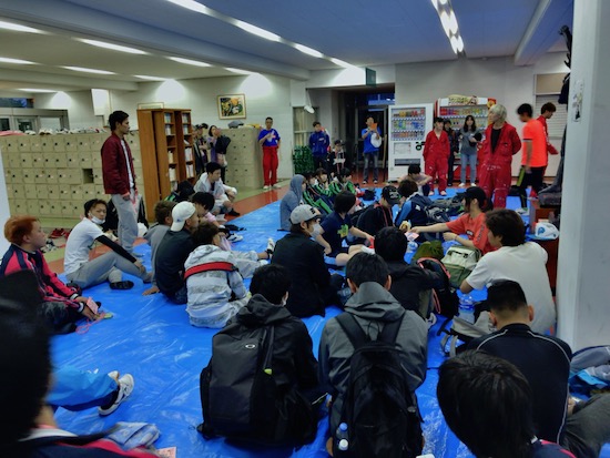 ここからの写真は木曜日放課後の様子。50キロ、70キロ参加者は、出発集会と言って、プリントを配られて、注意事項を聞きます。これも生徒会執行部が企画して、注意事項も自分たちで考えて説明します。