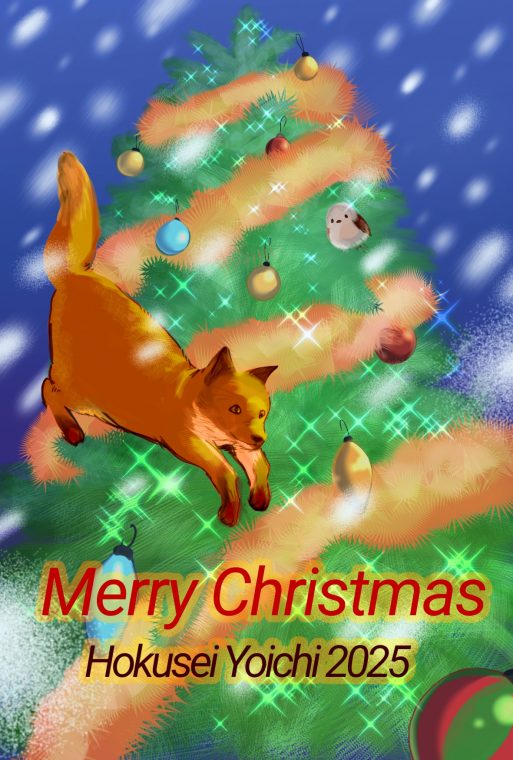 そして、北星余市オリジナルクリスマスカードもできました。今年のデザインはこちら。1年生の女子生徒が描いてくれました。