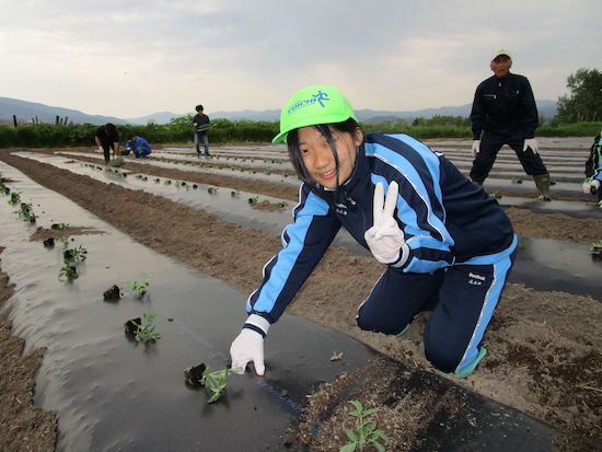 と、そんな話はさておきこの間の土日に町内でトマトの定植体験が行われ、そこに生徒たちも参加しました。