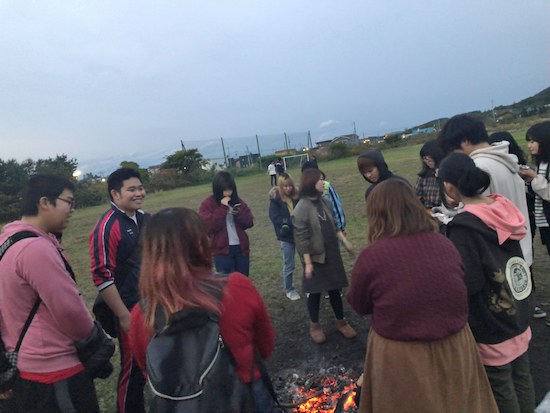 そして、最後の焼き芋を眺めながら火に当たる生徒たち。
