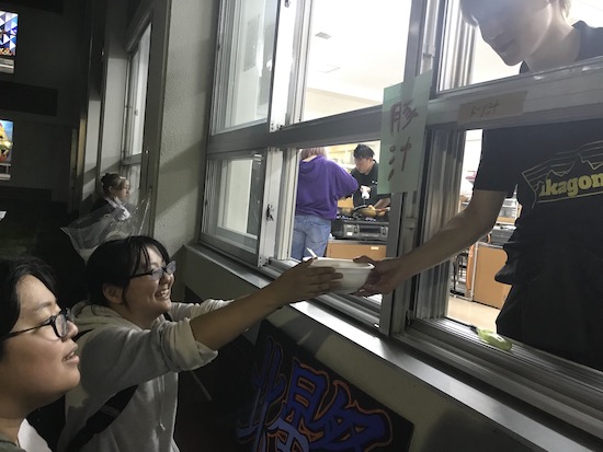 そして、豚汁。熱々でおいしかったのですが、受け取って一口目、ほぼ全員が「熱っ!!」と叫ぶほどの温度でした。今堀も4杯ほどいただきましたが、毎回「熱っ!」でした。